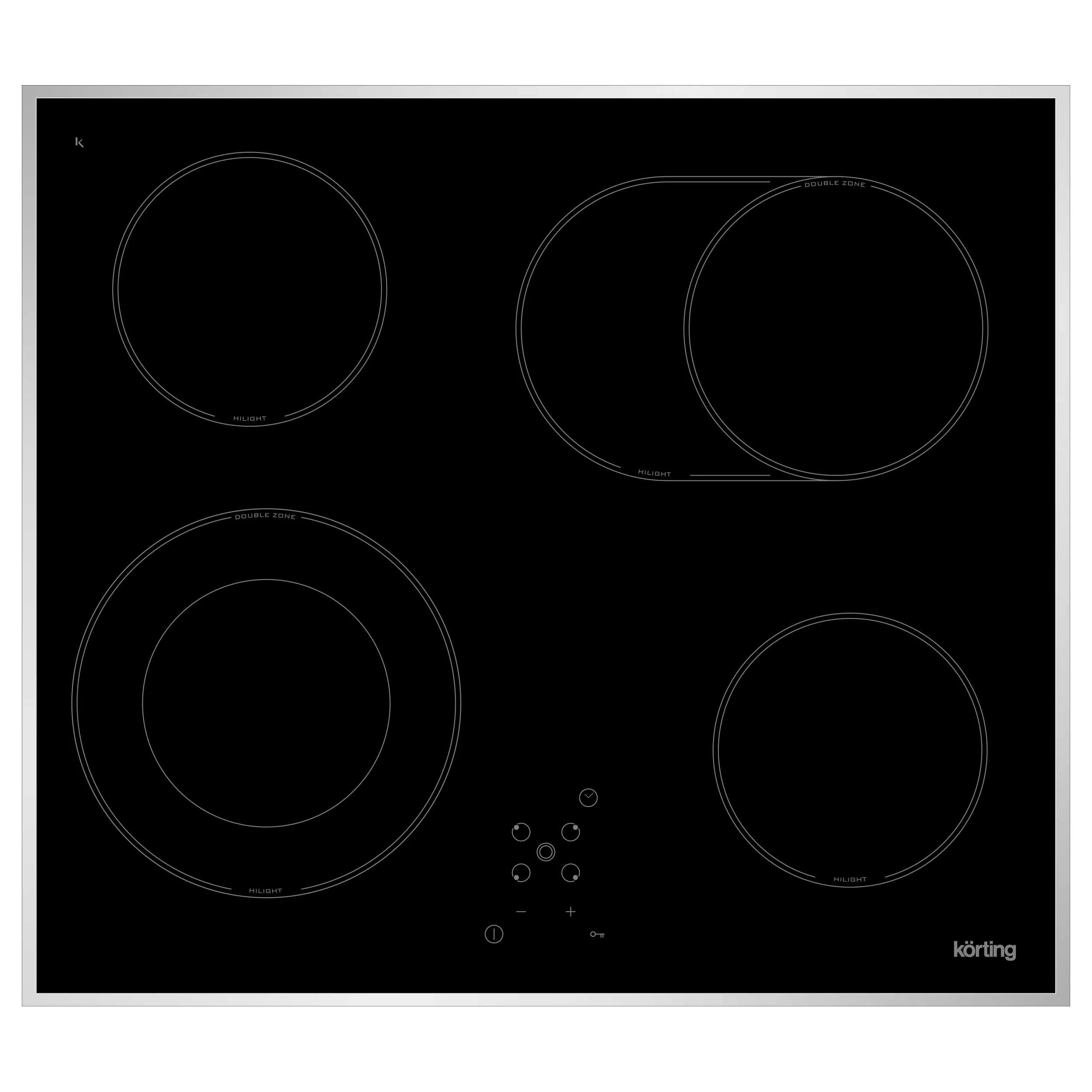 Электрическая варочная панель HK 62051 X стандартной шириной 60 см – это современный и стильный бытовой прибор встраиваемого формата из прочной черной стеклокерамики, обрамленный рамкой из нержавеющей стали. Панель оснащена четырьмя конфорками, включая специальные – двухконтурную и овальную, что значительно расширяет кулинарные возможности, позволяя использовать также посуду нестандартной формы, например, гусятницу или сковороду для гриля. Для каждой зоны нагрева предусмотрен свой дисплей, управление сенсорное – достаточно одного прикосновения для включения панели и выбора одного из девяти уровней мощности. Благодаря электронному таймеру возможно задать определенное время работы прибора, по истечении которого он самостоятельно отключится. Панель также прекращает работу, если пользователь забыл это сделать, что возможно благодаря функции автоматического отключения: время экстренного отключения зависит от заранее выбранного уровня нагрева. Индикация остаточного тепла предупреждает пользователя об опасной температуре соответствующего нагревательного поля и не гаснет, пока она не понизится до 60 градусов. Для большей безопасности предусмотрена функция защиты от детей, которая блокирует панель управления.