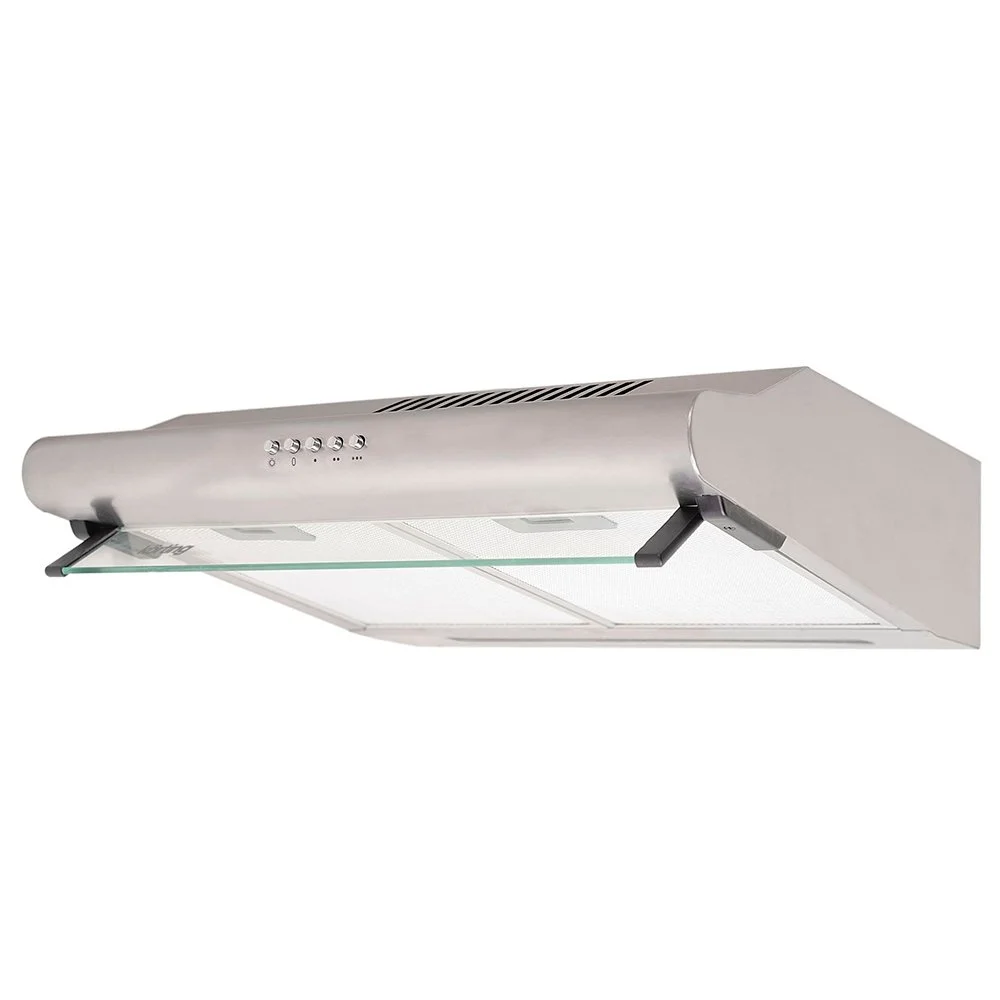 Ширина 60 см, Низкий уровень шума, Современный дизайн, Подвесной монтаж, Механическое кнопочное управление, 3 режима, Алюминиевые жировые фильтры, Угольные фильтры