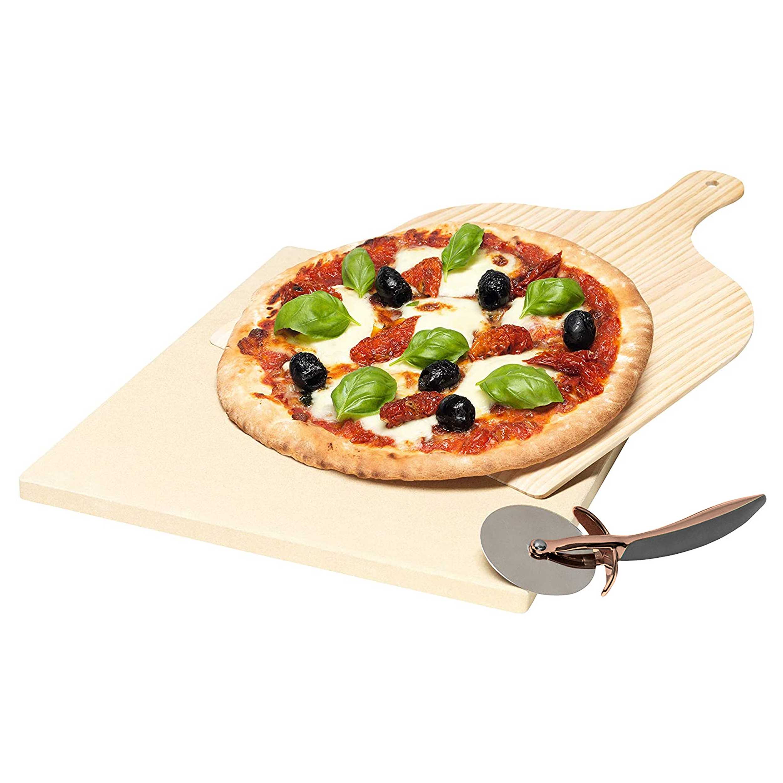 Камень для пиццы, 1 шт Деревянная лопатка, 1 шт Нож для пиццы, 1 шт Брошюра с рецептами, 1шт